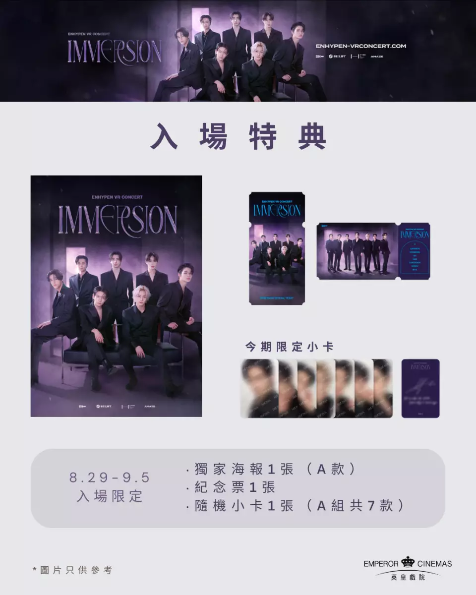 《ENHYPEN VR CONCERT : IMMERSION》8月29日至9月14日於英皇戲院(銅鑼灣時代廣場)限時獨家上映。