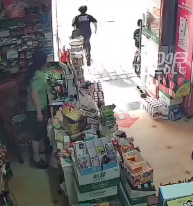 四川男闖雜貨鋪搶檳榔後企圖坐「同夥」電單車逃逸,結果連人帶車一起摔倒,即場向老闆娘認錯求饒。