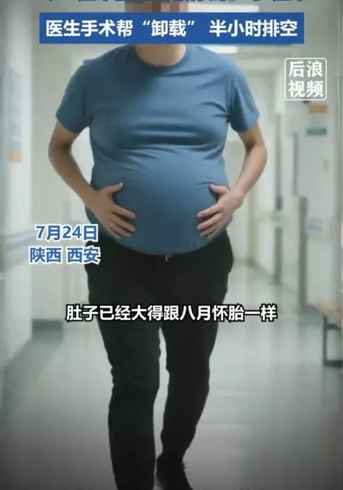 陝西一名男子長期便秘導致腹部腫脹似懷胎八月,經手術終於排出20KG糞便體重驟降。