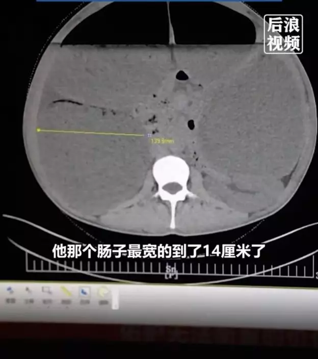 綜合內媒報導,陝西西安一名男子王先生(化名)因長期便秘,導致腹部嚴重腫脹似「青蛙」。7月24日,王先生前往西安國際醫學中心醫院消化內科求診,經檢查發現他的腸管最寬處達14CM,遠超正常人2至3CM的腸管寬度標準。他自嘲:「肚子大得跟八月懷胎一樣」,感覺「快要爆炸」。