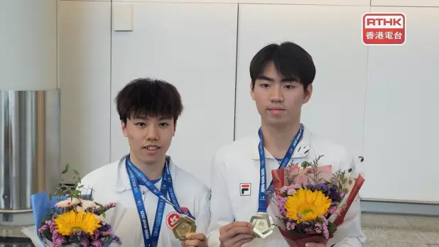 在世界大學生運動會取得1金3銅成績的香港乒乓球代表隊返港,其中包括於男雙項目奪金的姚鈞濤和陳顥樺。