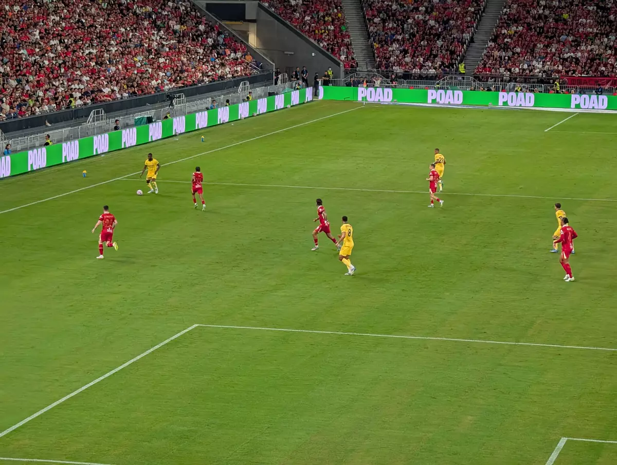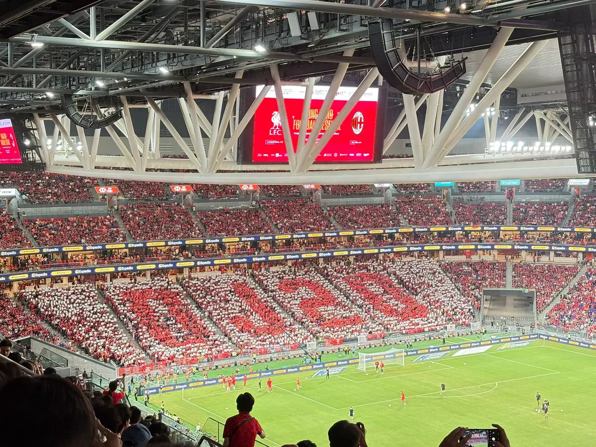 賽事晚上7時半展開,開賽前不少座位都已坐滿,當中大部份都是利物浦球迷,他們穿上代表主場的紅色球衣,現場一片紅海。