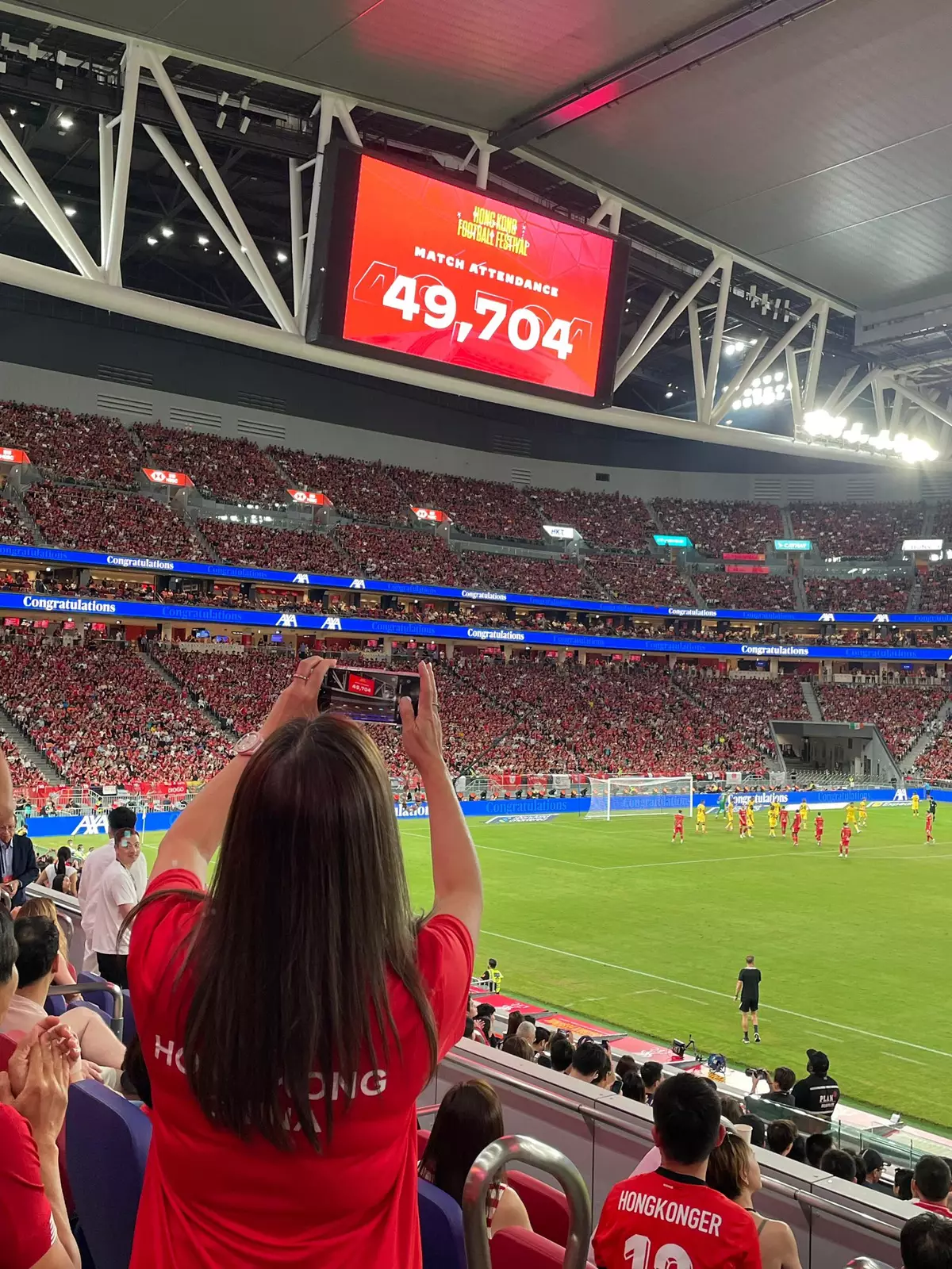 她又說,看罷球賽好肚餓,大伙兒到九龍城吃宵夜,見到餐廳間間一片紅,場內場外氣氛一流,盛事效應顯露無遺。