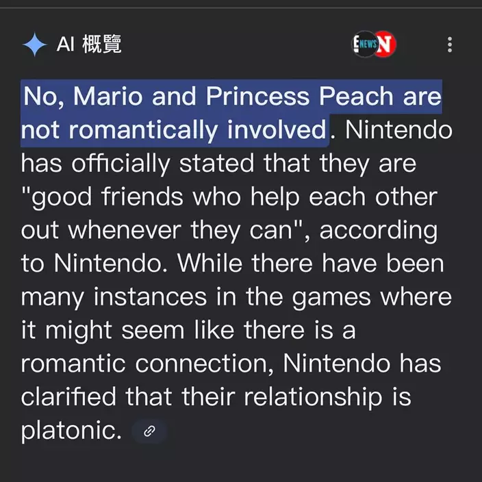 任天堂官方澄清,瑪利奧與碧姬公主並非戀人關係,只是好朋友。