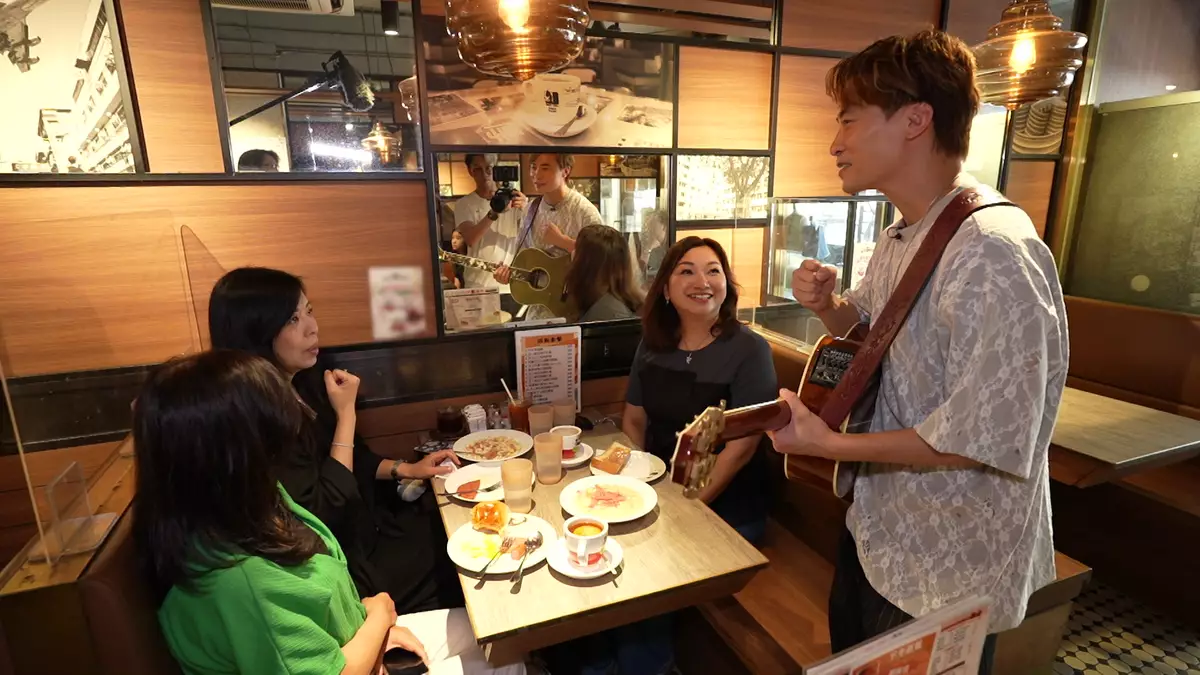劍文入餐廳突襲觀眾,即場演唱《Shall we talk》。