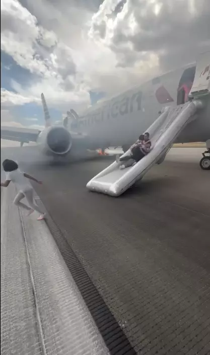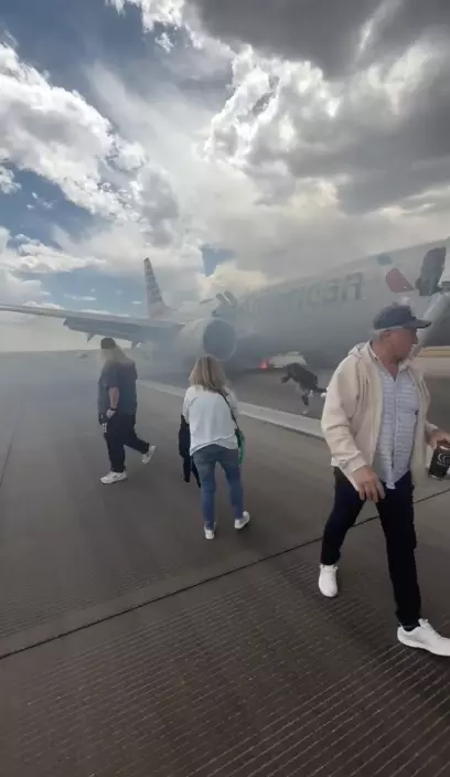 美航波音客機起飛突失火濃煙四起,乘客及機組人員緊急透過滑梯逃生,混亂畫面曝光!