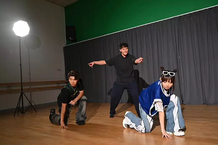 「小薯茄」成員童童及阿J乘機向荷里活級數團隊偷師