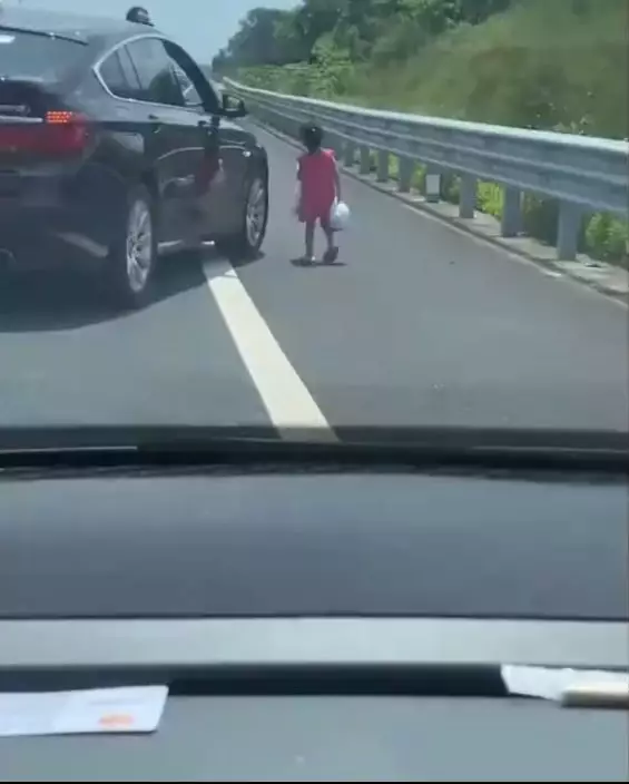 7月14日中午,江西贛州南康區南康西收費站附近地表溫度超過50℃。當日中午,一名年僅6歲的女童獨自背著粉紅色書包,在車來車往的機動車道上踉蹌行走。女童疑因高溫脫水、身體嚴重缺水出現語言混亂及步態搖晃等症狀,險遭後方車輛撞及,情況相當凶險。