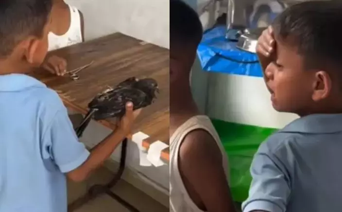 印度好心男童將受傷鴿子送院,聽見牠沒救黯然落淚感動人心。影片截圖