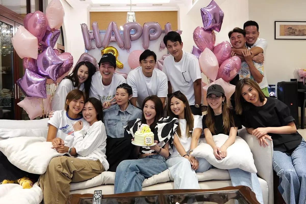 林夏薇在IG Story分享合照,可見豎起大拇指的林夏薇與老公緊靠在一起,老公更肉緊地捉實林夏薇的手臂,相常恩愛!同場還有好友「三料視后」佘詩曼、視帝譚俊彥、陳山聰及梁靖琪,林夏薇又留言:「結婚10周年!錫婚快樂,風雨同路!多謝兄弟姊妹有緣陪伴!」
