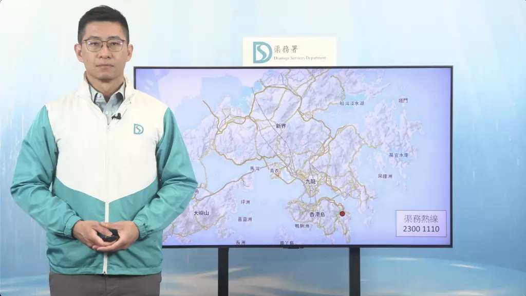 渠務署提醒,暴雨可能會令河水突然暴漲,市民不應接近河道。若發現排水設施淤塞或有水浸情況,可致電24小時渠務熱線 2300 1110,署方會盡快派隊伍清理。