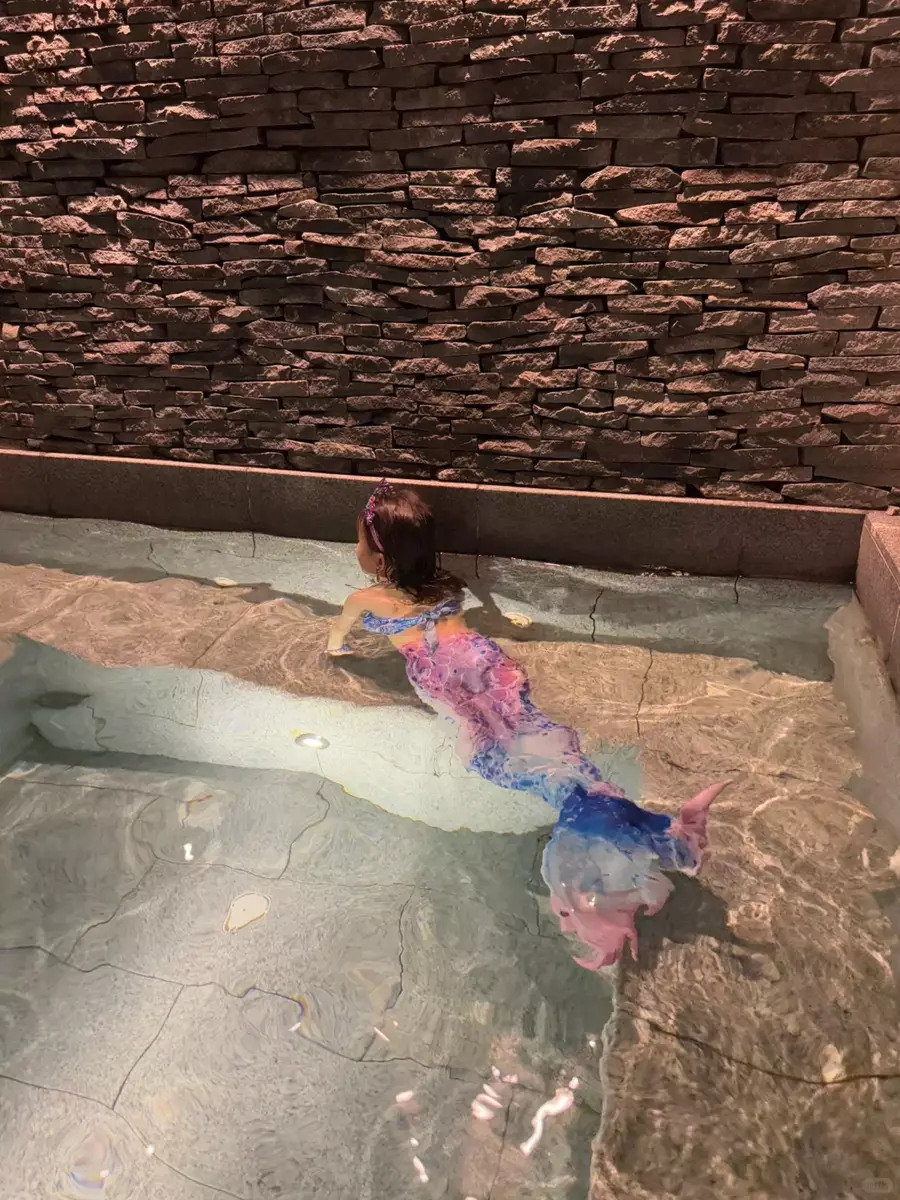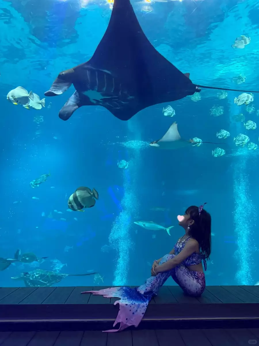 張馨月以囡囡的口吻留言:「我的暑假旅行第一站新加坡!最近迷上了美人魚,爸爸給我訂了可以在房間裏看魚的酒店,媽媽給我買了美人魚的衣服,幫我實現了小小願望。」相中可見,Luna化身小美人魚,在巨型玻璃魚缸前擺Pose拍照,又到泳池游水。