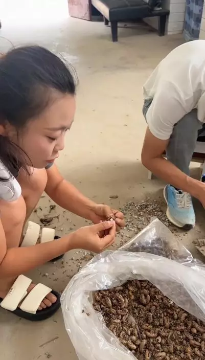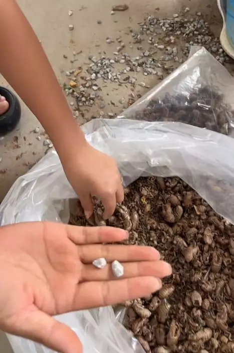 女子高價收購蟬殼發現8成貨品內藏小石頭憤而報警!影片截圖