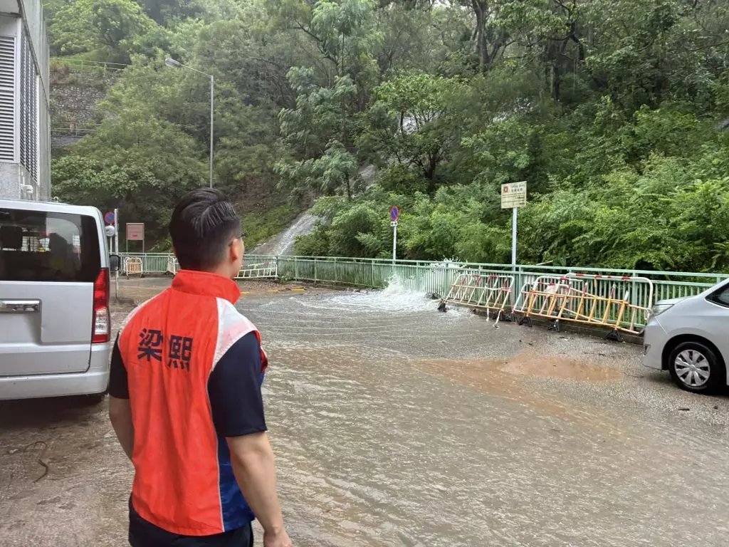 至於筲箕灣耀興道山邊護土牆,出現像瀑布的水流。梁熙估計是早前颱風韋帕襲港後,仍有落葉及樹枝未及清理,被大雨沖到排水溝位置,形成大水亂流,甚至「瀑布」情況。