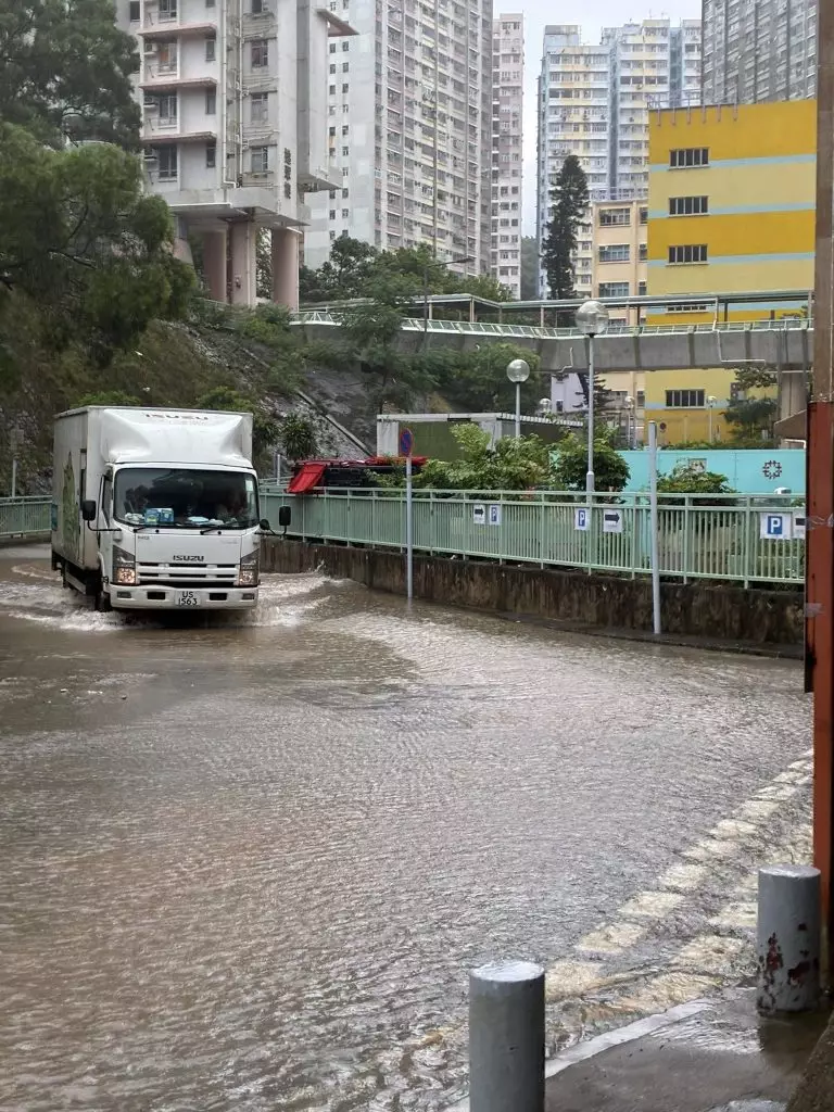 天文台早上發出今年首個黑色暴雨警告,生效接近2小時,東區及南區雨勢特別大,錄得每小時雨量超過100毫米大暴雨,多個地點嚴重水浸,包括柴灣環翠停車場、柴灣道迴旋處等。