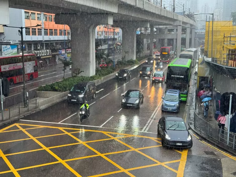 天文台早上9時10分發出今年首個黑色暴雨警告信號。巴士的報記者攝