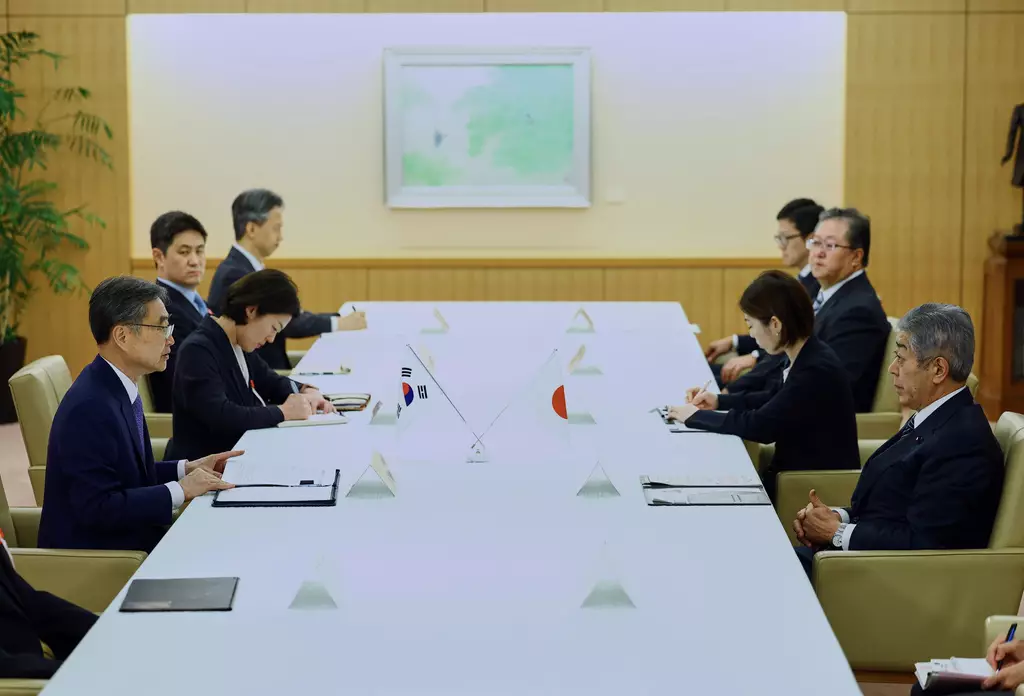 南韓新任外長趙顯訪問日本,與日本外相岩屋毅會談。