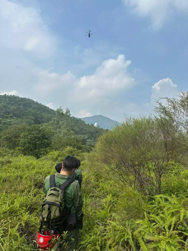 新界北快速應變部隊警長賴家聰,是新界北山嶺搜救專隊的成員,亦參與今次的搜索行動。當天下午收到老翁的座標後,多個部門組成的搜索隊伍立即趕到事發地點,當時現場亦開始起霧,增加搜索難度,飛行服務隊直升機亦要冒險於低能見度下協助團隊搜索定位。賴家聰憶述,到達位置後,由於一帶為密林,根本難以發現老翁,「密林遮蔽下,即便聽見老翁約在20米內的呼救聲,仍難覓蹤影。」
