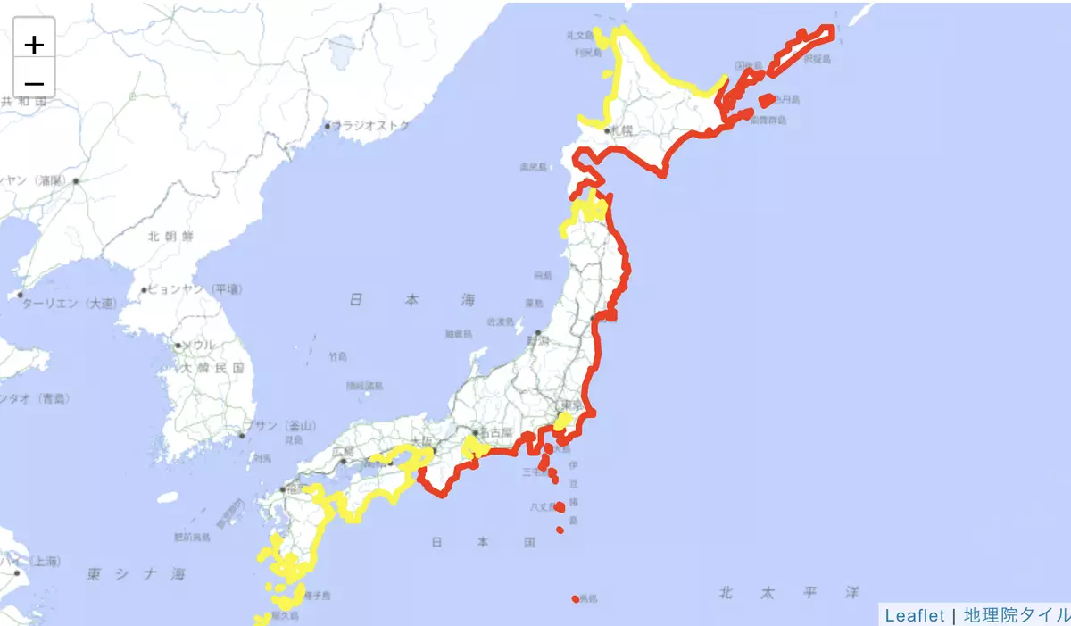 日本沿岸地區將受海嘯威脅。日本氣象廳圖片