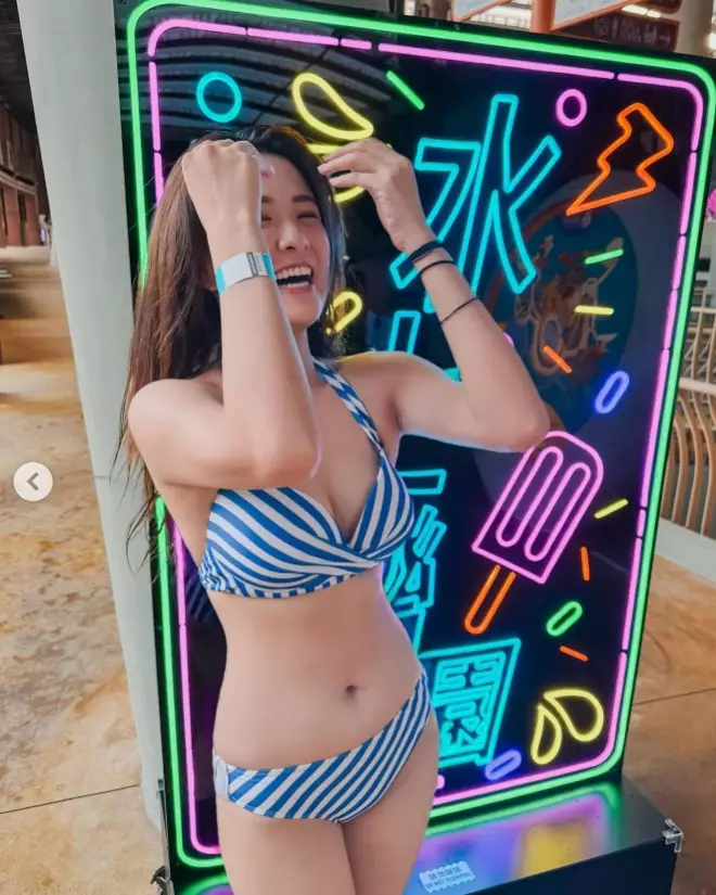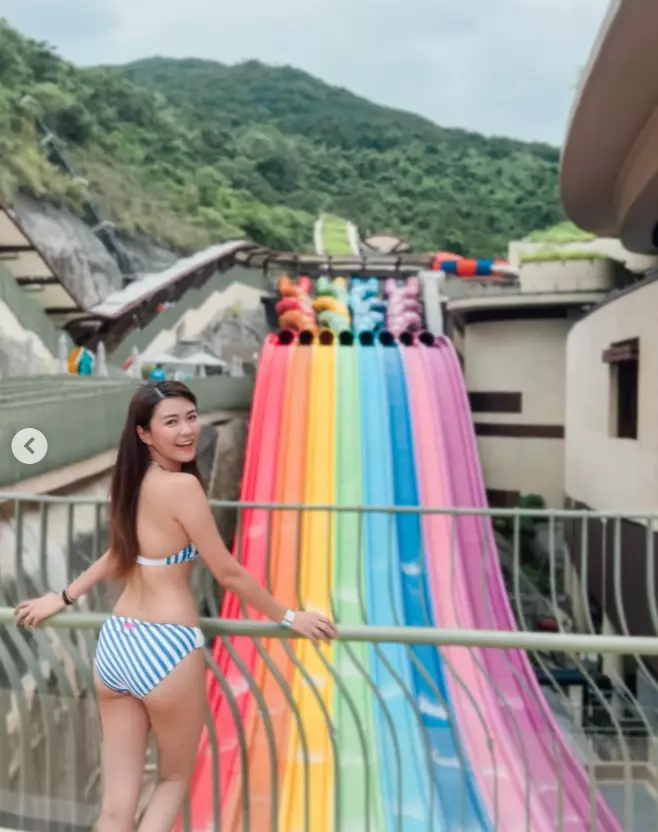 雖然近日天氣麻麻,但玩水是夏天必做的活動,江嘉敏都去了水上樂園玩水,並表示:「落雨最好嘅活動就係去玩水,咁就唔怕濕身啦!」她又晒出一輯超級性感的泳裝照,可見她穿著一身藍白相間的三點式比堅尼泳衣,大騷豐滿上圍及纖腰,凹凸有致的好身材震撼大家眼球,令人目不暇給!