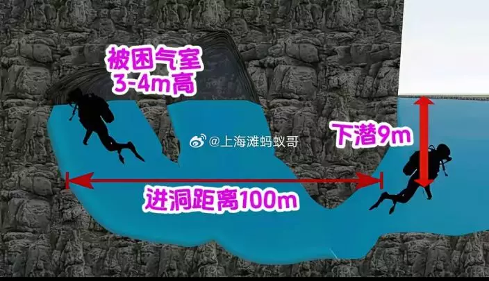 湖南一男子前往廣西省百色市潛水卻意外地被困在水下的溶洞中。微博圖片
