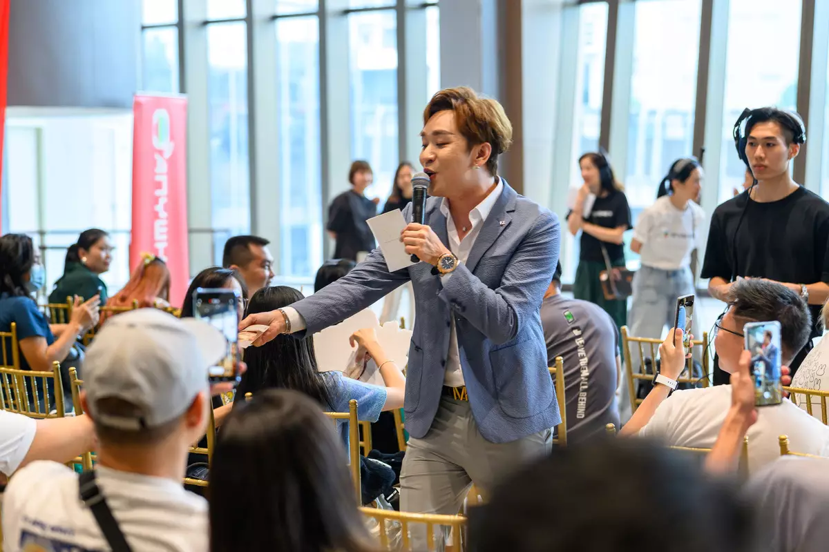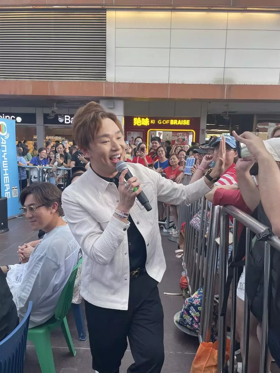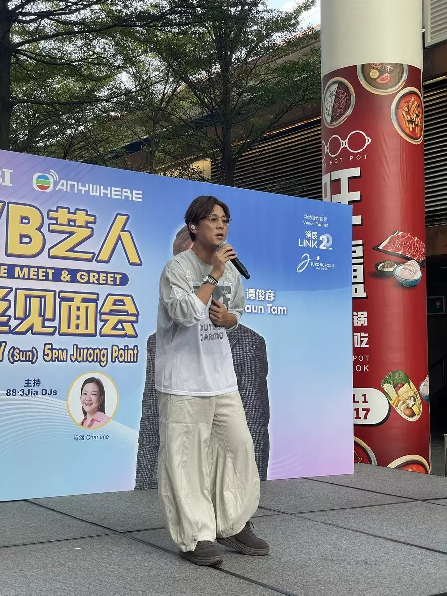 兩人隨即轉到Jurong Point出席「TVB藝人粉絲見面會」,他們甫出場踏上舞台,現場立即起哄,大叫自己偶像名字。Shaun隨即向在場觀眾問好,表示自己對上一次到新加坡宣傳已是2018年,難得來到當地,嚷著要品嚐雞飯及印度煎餅。他為現場粉絲及觀眾演唱兩首歌曲,包括令他榮獲TVB視帝的劇集《換命真相》主題曲《只因深愛你》,其後不忘呼籲新加坡朋友支持新劇《麻雀樂團》,他自詡為「灣仔麻雀小王子」,並獻唱劇集插曲《與我常在》予在場觀眾,娓娓動聽。
