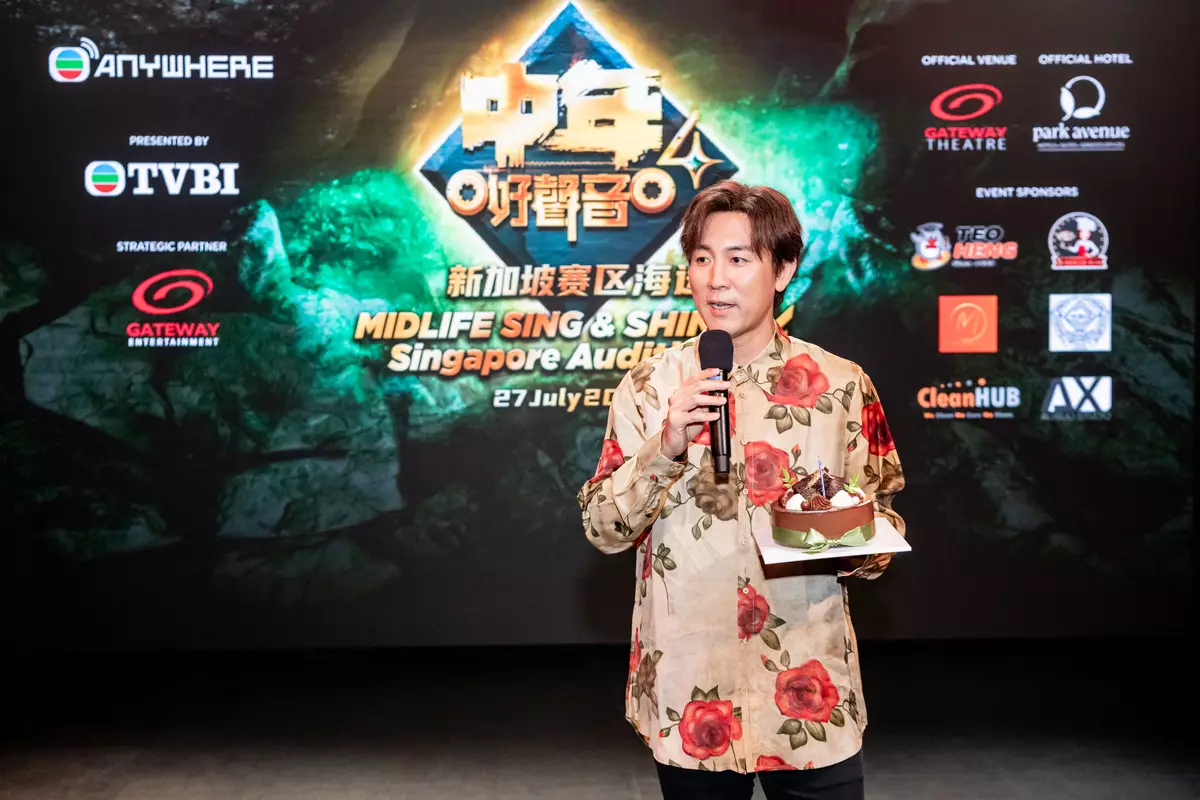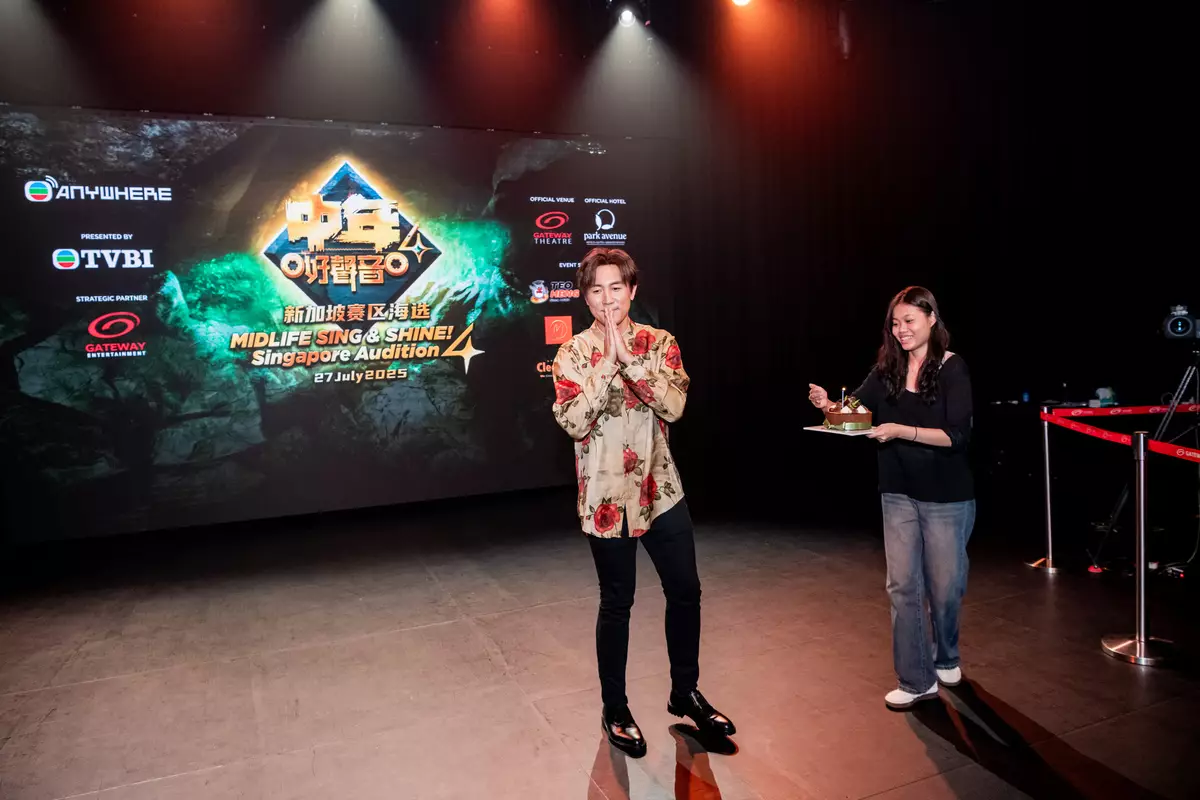 今次Shaun和Rax的新馬行程相當緊湊,翌日(7月27日)旋即飛抵新加坡,出席下午在Gateway Theatre舉行的《中4》海選(新加坡賽區)作特別嘉賓。被選出的參賽者亦有機會晉級《中4》新馬賽區下一輪選拔。兩位型男Shaun及Rax則專心欣賞參賽者的演出,其間在場工作人員製造驚喜,為Shaun送上生日蛋糕,預祝他本月30日(今天)生日快樂。「壽星仔」 Shaun感謝工作人員為他提早慶生,亦寄語有夢想的人要一直追夢,克服困難後自身會變得強壯。