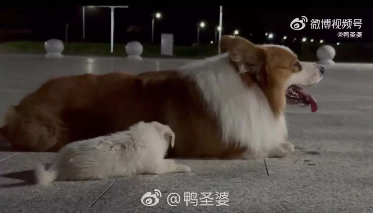 柯基犬公園散步叼回小奶狗求飼主收留。影片截圖