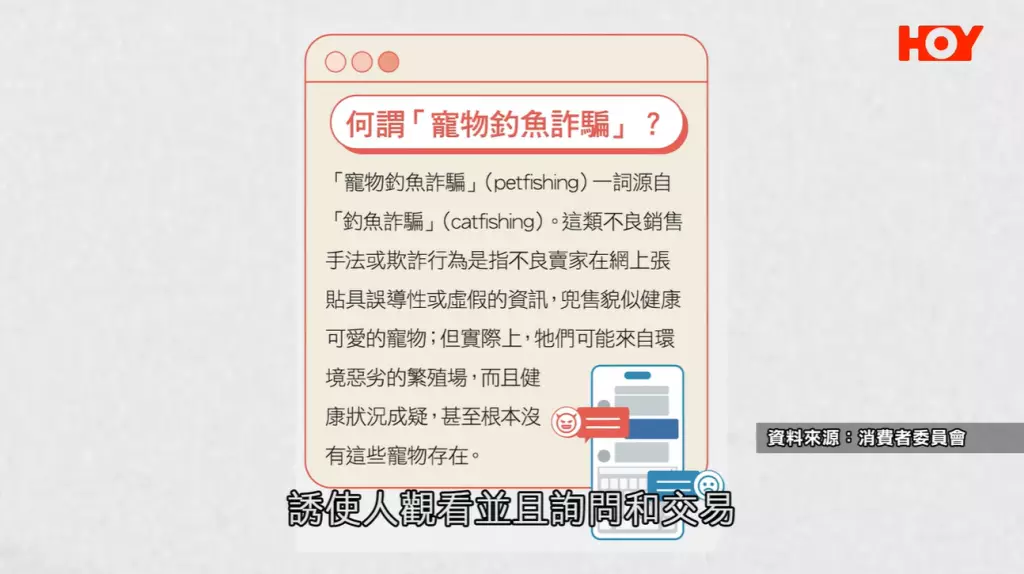 現時網購方便,買到的商品可謂五花八門、應有盡有,但同時間也有奸商走漏洞在網上推銷寵物,出售有病或非法渠道繁殖的寵物,甚至出現寵物釣魚詐騙,用「可愛動物照片」令消費者心軟上當。