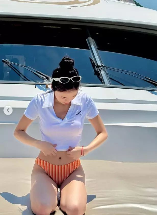 文凱婷在IG晒出在遊艇上打卡的靚相,可見她罕有以泳衣上陣,雖然外搭了一件crop top,比較密實,但露出的纖腰和長腿都好吸睛,眼到網民心心眼,更紛紛表示「睇唔夠」!不過,文凱婷卻留言:「這是暈船浪前的狀態 #之後的別提」,以乎她因為暈船浪而沒有心思再影相。