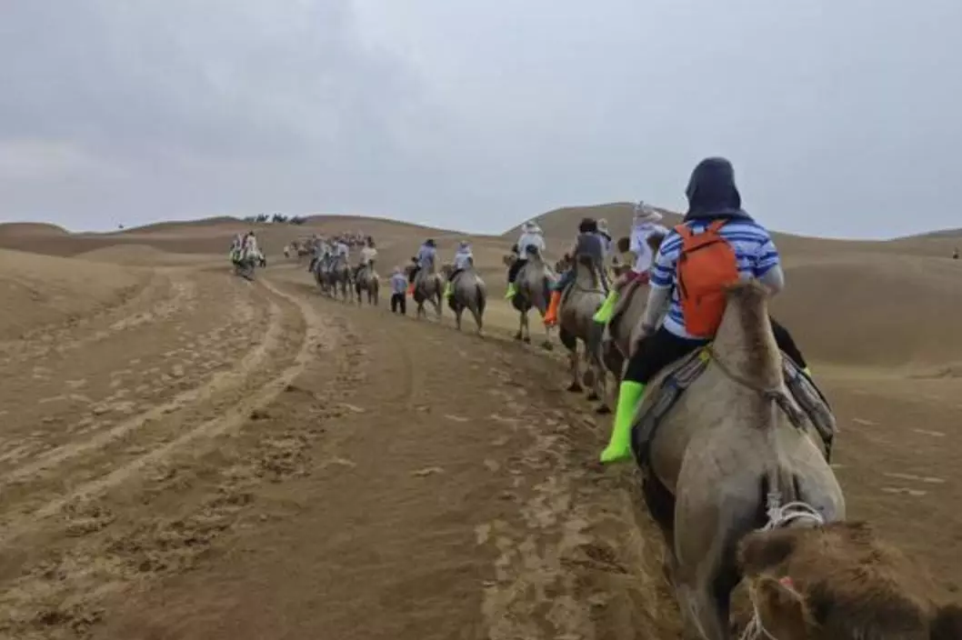內蒙古遭遇暴雨來襲,4天雨量驚破66年最強降水紀錄,遊客沙漠騎駱駝因惡劣天氣受困纜車等候廳達3小時。