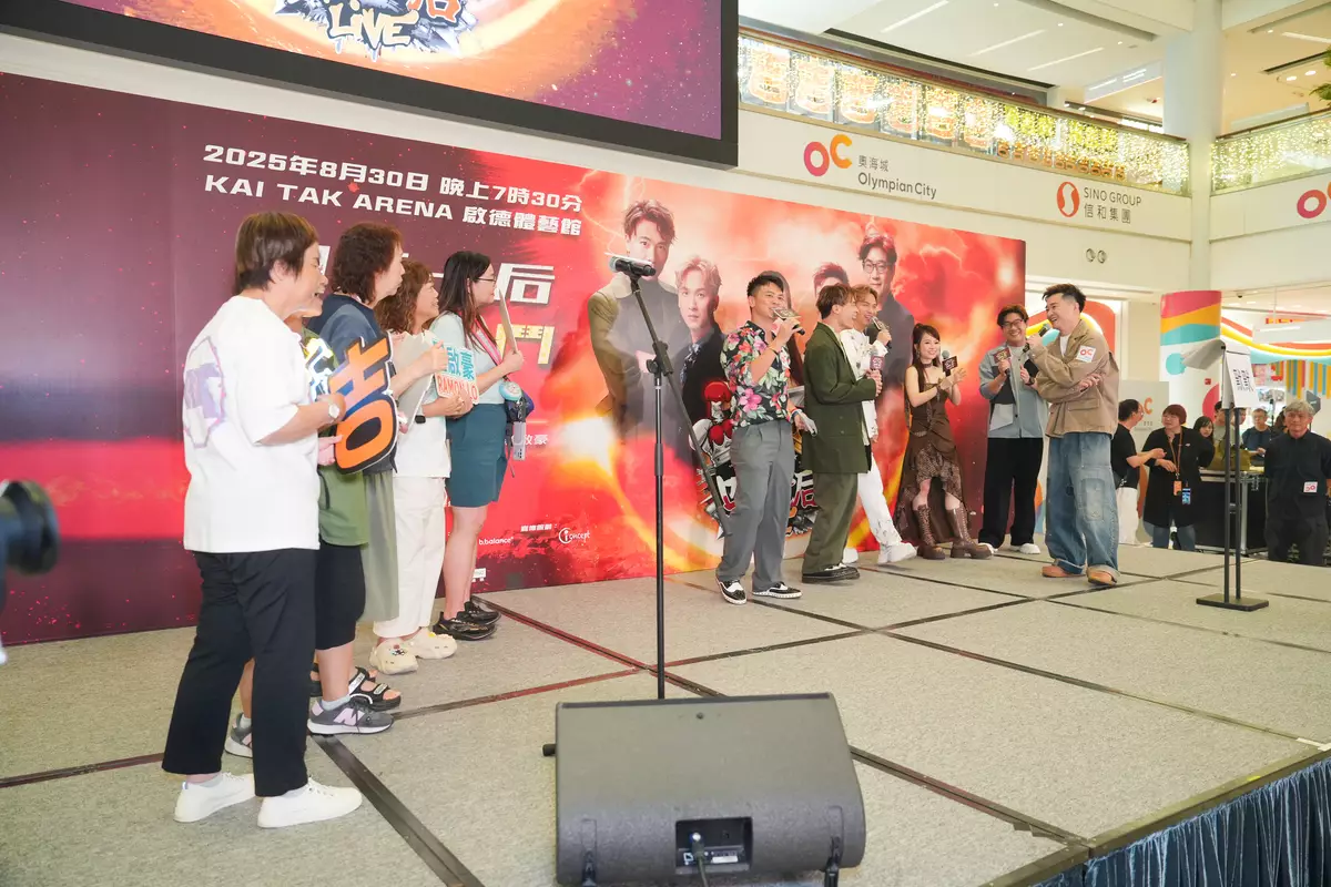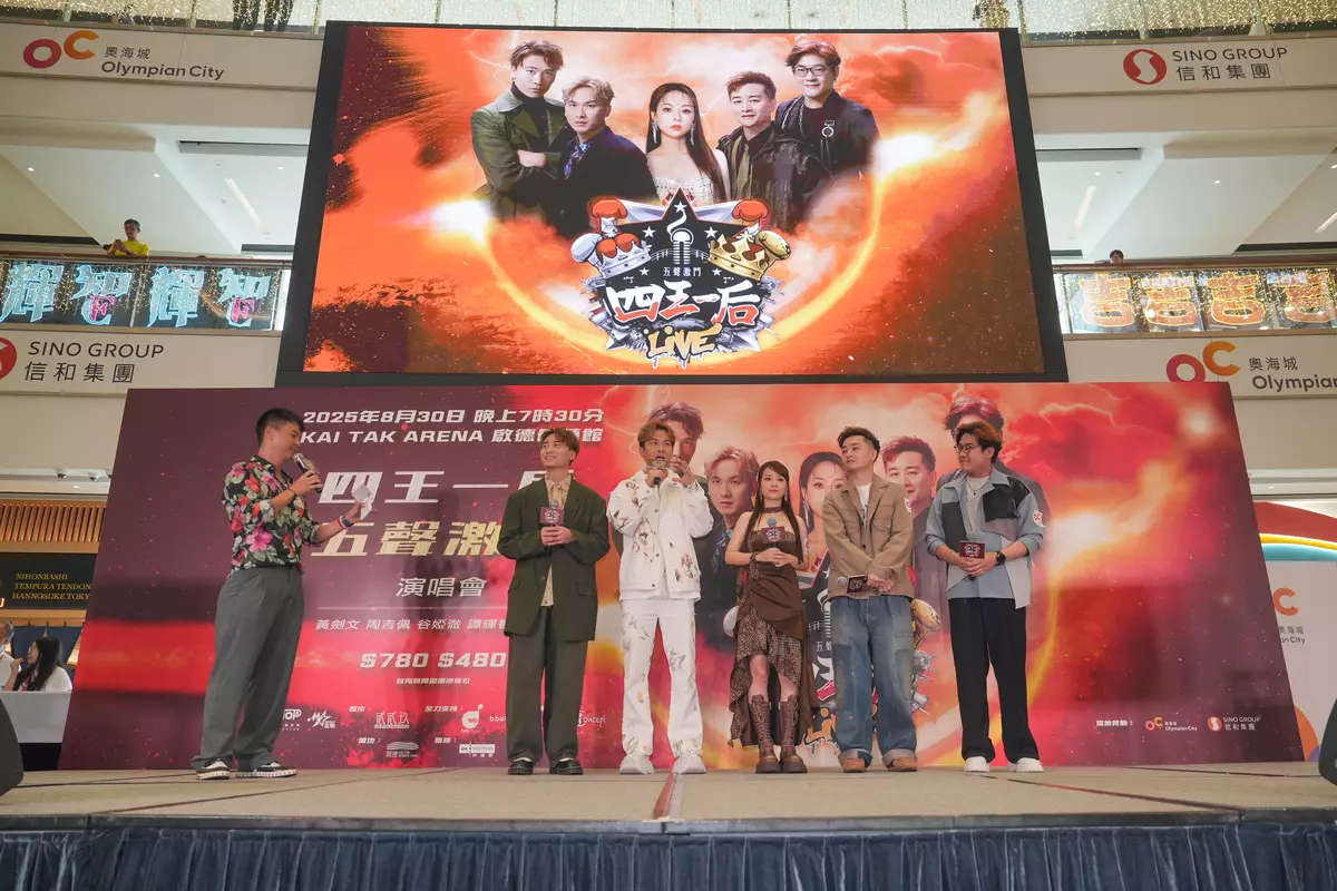 無綫歌唱真人騷《中年好聲音》系列,讓不少熱愛音樂的中年人追夢成功。五位因《中年好聲音》而相遇的周吉佩、羅啟豪、譚輝智、黃劍文、谷婭溦,昨日(7月30日)出席在奧海城2期舉行「四王一后 五聲激鬥演唱會」發布會,逾百歌迷在場見證下,宣布將於2025年8月30日在啟德體藝館星空中相聚,以靚歌許願,一起實現彼此美麗的夢想,五聲閃耀啟德體藝館,激鬥天籟時空!