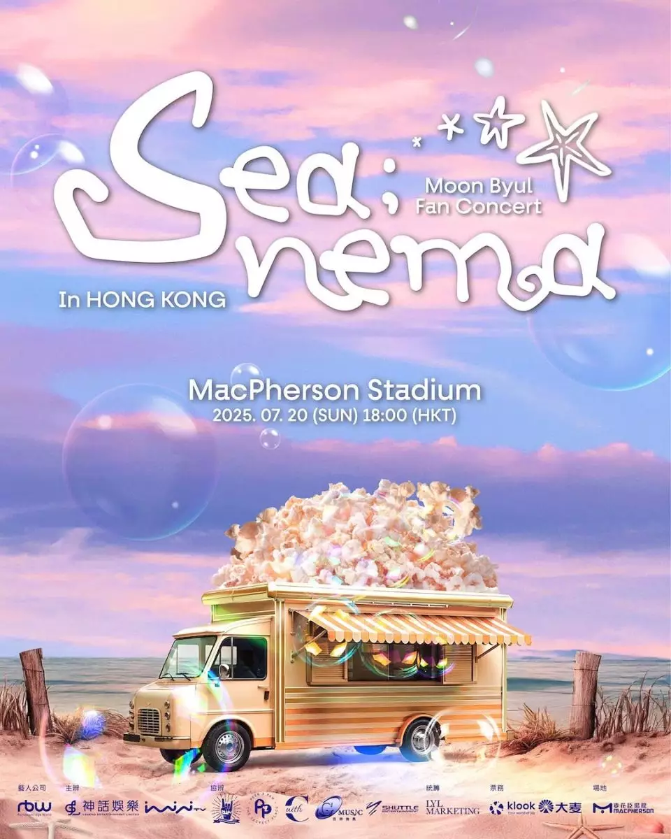 據主辦單位公告,《Moon Byul 2025 Fan Concert 《sea;nema》in Hong Kong》將會延期至9月7日(星期日)晚上六時三十分於西沙GO PARK舉行,觀眾需到主辦單位提供的網上表格內填寫相關資料以便優先保留補場演出門票的名額,最新詳情需留意主辦單位的社交平台的公佈。