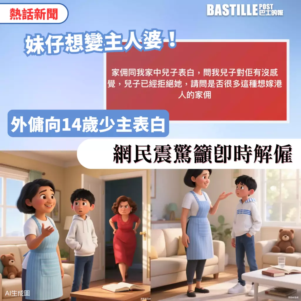 近日有香港僱主在社交平台發文,指家中聘請的外傭竟向年僅14歲的兒子表白,詢問少主對她「有冇感覺」,事件引發網民熱議。