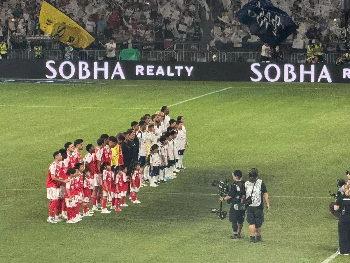 熱刺就派出後衛羅美路、雲迪芬擔任正選,南韓球星孫興慜就列為後備。現場所見,大部份都是穿着紅色球衣的阿仙奴球迷。有球迷表示,啟德體育園媲美世界級場館,天幕亦可以關閉,不受炎熱天氣影響。