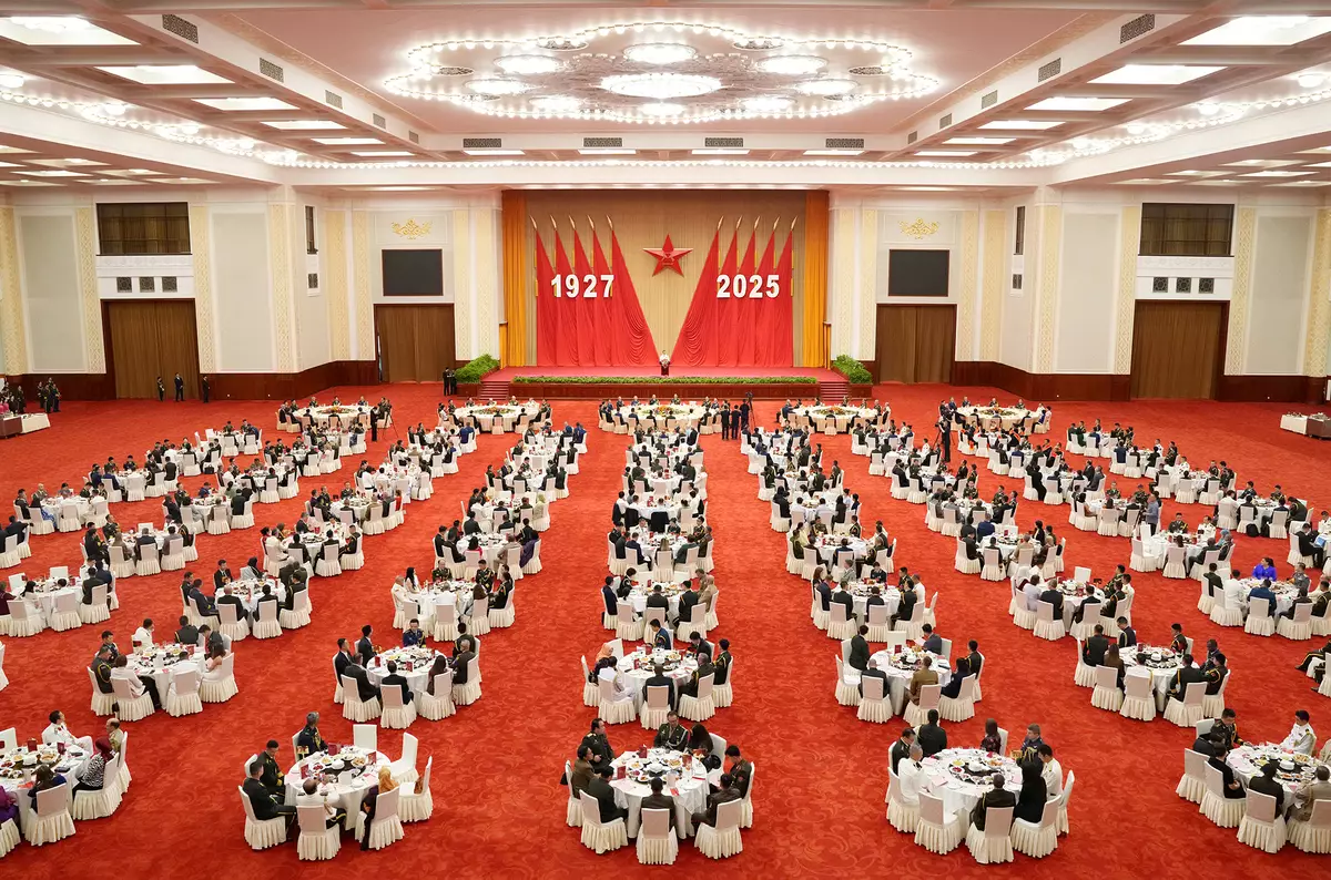 國防部舉辦招待會,慶祝中國人民解放軍建軍98周年。國防部長董軍致辭時,向全體解放軍人員等致以節日祝賀,並向為人民軍隊建設作出貢獻的老同志及退役軍人等表示親切慰問。