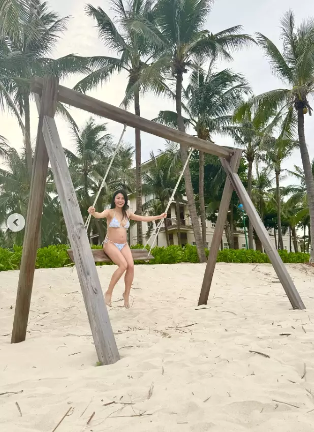 Coffee在IG晒出旅行靚相,並留言:有預感呢一胎我有可能會由48kg->70kg…跟住琴日聽朋友講醫生建議懷孕期間重10kg內會好啲我而家已經過左啦喂 59kg…正努力接受不同階段嘅自己,好好享受放肆休息同放肆食嘢嘅時候!」懷孕接近七個月的Coffee雖然自稱體重已達59kg,但從她哂出的比堅尼泳衣照可見她肥胎不肥人,四肢纖細,而且上圍明顯升級,身材依然好Fit!