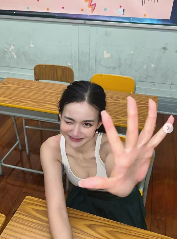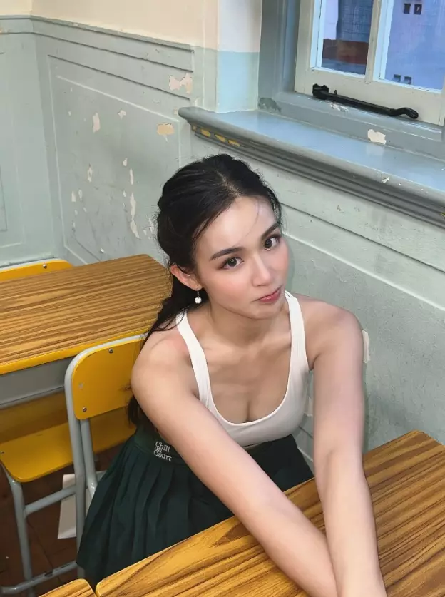 在處境劇《愛·回家之開心速遞》中飾演「雷公秘書」的范莎莎,憑甜美樣貌與鬼馬演技入屋,近年更活躍於《CP訓練營》等綜藝節目,人氣急升。近日她在IG大派福利,上載一輯以班房為主題的寫真,身穿白色低胸背心配迷你短裙,化身「犯規學生妹」,更以高炒視角大擺可愛姿勢,瞬間引爆網民熱議!