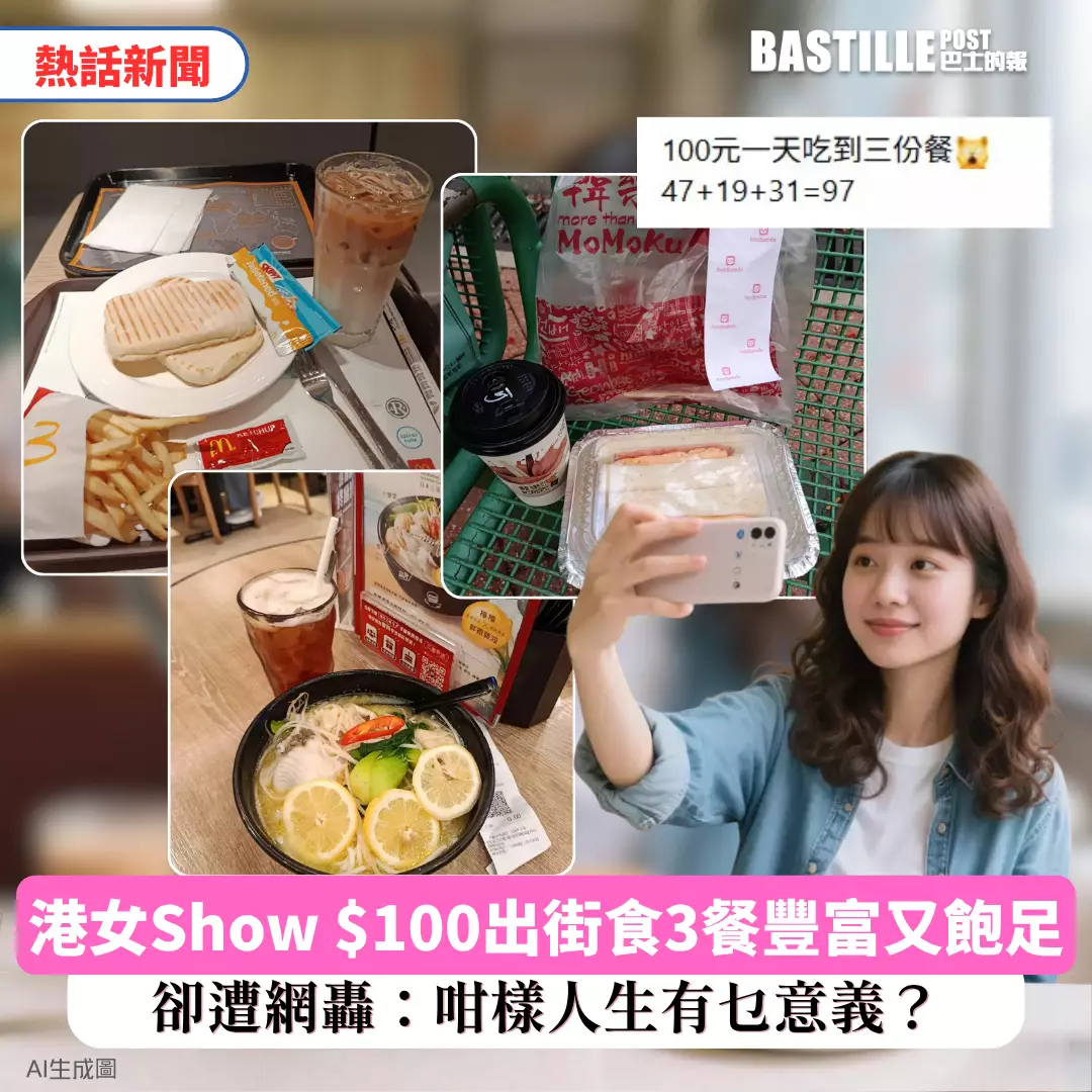 想慳錢可以從生活各方面入手,日前就有一位港女由「食」做起,嘗試以100元解決三餐,並將餐單分享到社交平台,雖然這三餐睇來豐富又飽足,不過網民睇法卻兩極。