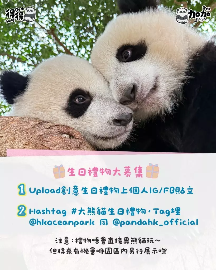 2、Hashtag #大熊貓生日禮物,Tag埋 @hkoceanpark 同 @pandahk_official,向全宇宙share你對大熊貓嘅愛!