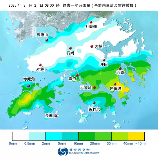 天文台表示,暴雨警告信號現時為紅色,表示香港廣泛地區已錄得或預料會有每小時雨量超過50毫米的大雨,且雨勢可能持續。