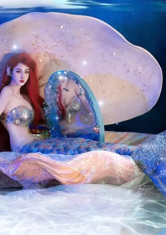 無論是側臥巨型貝殼,還是俯身展露纖腰,均突顯其豐滿上圍及玲瓏曲線,