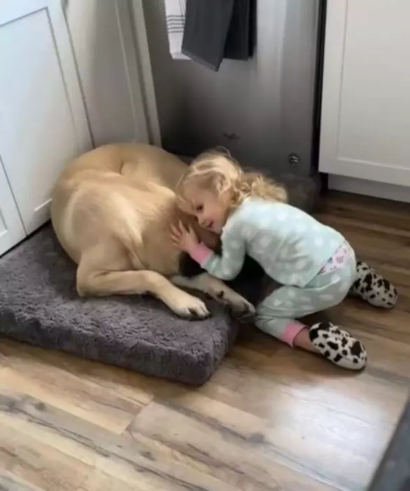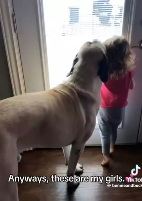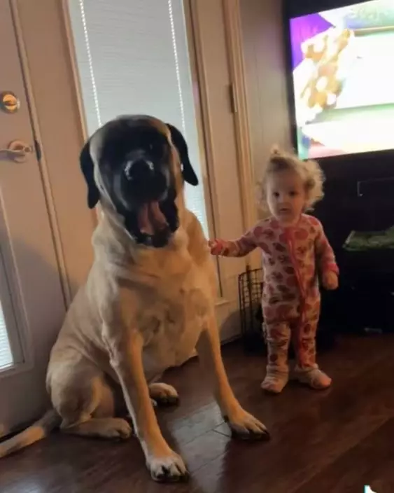 巨型獒犬獲新飼主領養後變身孩子的暖心守護者。影片截圖