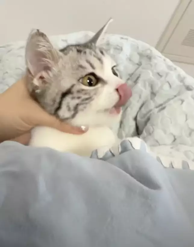 一隻生病的白底虎斑貓為了快點康復,竟然乖乖自己喝下藥水,還在喝完後期待地望著主人求誇獎。影片曝光後大批網民誇讚牠是「天使貓」,直呼太難得了。