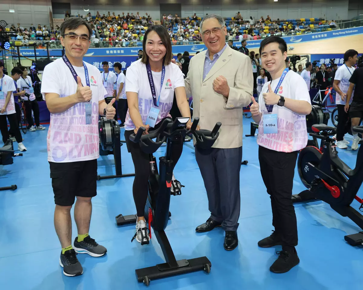 馬會董事黃嘉純出席「十五運會和殘特奧會倒計時一百日活動(香港賽區)」,並見證馬會義工隊成員與其他參加者,合力完成「全運100全民共創百萬公里大挑戰」。參與挑戰的市民以步行、跑步、單車等不同運動方式,於七月在線上已完成999,900公里的距離,並於今日的活動中進行最後100公里的衝刺。有關活動及挑戰,均由全國運動會香港賽區統籌辦公室(全運會統籌辦)主辦。