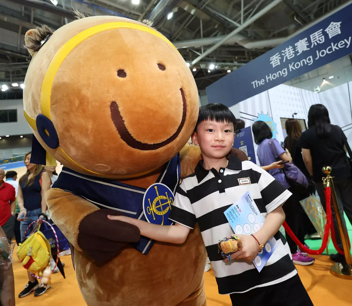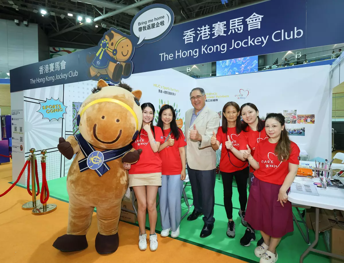 馬會董事黃嘉純(中)在馬會攤位留影。香港賽馬會圖片