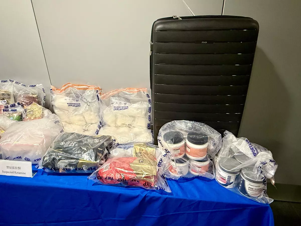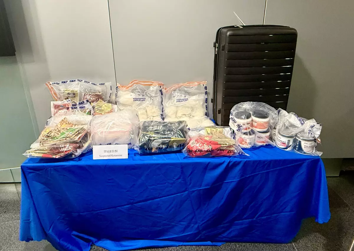 警隊毒品調查科人員經過深入調查,於星期五(2025年8月1日),針對一個有組織販毒集團,在九龍灣及大埔執行打擊毒品行動。行動中,拘捕兩名本地男子,包括販毒集團主腦及骨幹成員。並且檢獲總共約26公斤懷疑氯胺酮,市值超過港幣一千萬元。