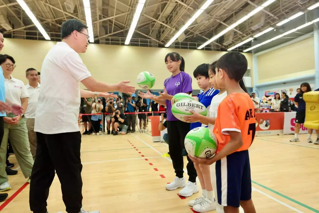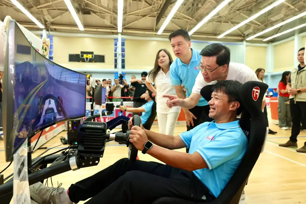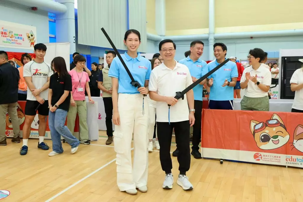李家超與官員先觀賞啦啦隊表演,又參與不同攤位互動遊戲,期間李家超與巴黎奧運女子個人重劍金牌得主江旻憓,參與虛擬劍擊活動;羅淑佩就參與三項鐵人互動遊戲。李家超之後又觀賞霹靂舞示範表演,並與演出者交流。