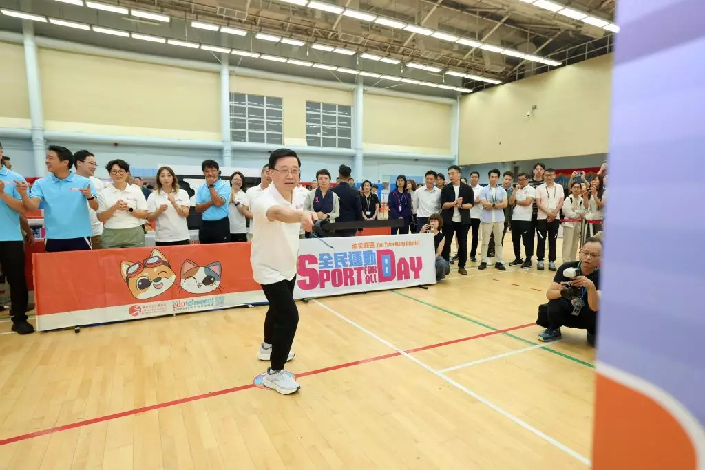 李家超在社交網站形容,場地變身運動樂園,設有多款互動遊戲,市民全情投入、反應雀躍,又指康文署星期日在全港各區舉辦不同康體活動,亦免費開放多個康樂設施予市民使用,鼓勵市民與家人朋友做運動。