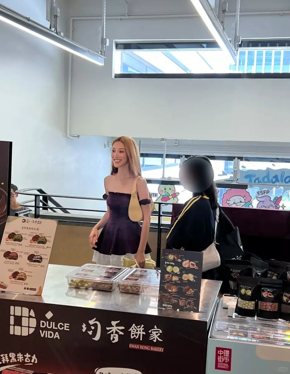 有網民在「小紅書」分享在中環街市偶遇陳凱琳的照片,並留言:「中午吃飯在中環街市碰見了tvb演員陳凱琳Grace,真人尊嘟(真的)好漂亮!!!不愧是鄭嘉穎老婆!在香港也太容易偶遇明星了吧。」相中可見,向來身材纖瘦陳凱琳穿上露肩短裙,加上深邃的五官及一頭披肩金髮,完全看不出已為三子之母!